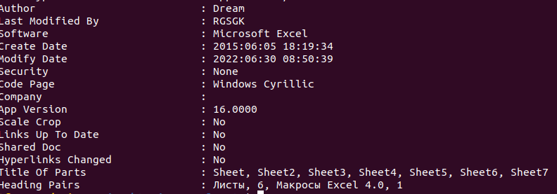 As for the XLS files, the majority have the alias “Dream” as their author, and the last change was made by the alias “RGSGK”.