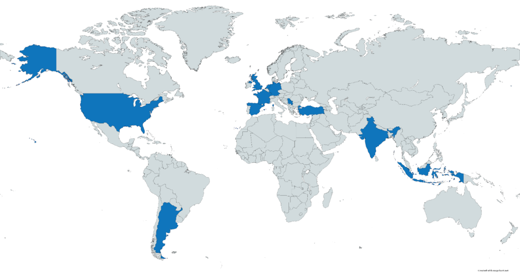 Regarding the addresses/URLs contacted during the infection chain, the vast majority appear to be infrastructures compromised by the attacker and subverted to host malicious files, with the infrastructure being geographically dispersed.