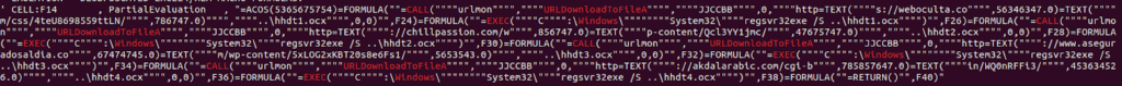 When executed, these macros would download 4 remote files from the Internet, and later use regsvr32.exe to execute them.