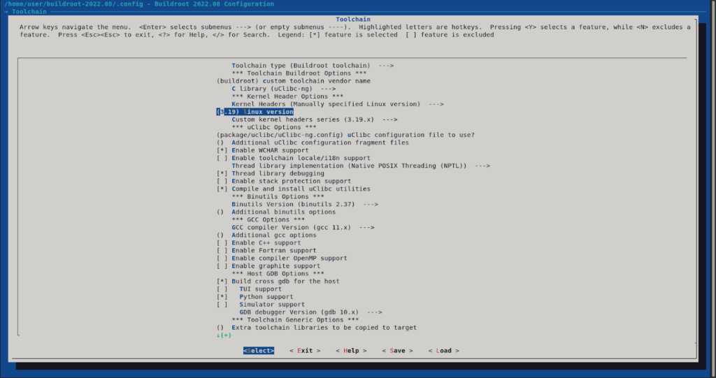 There are other options to explore and customize the build that you can enable/disable and configure, but in our case, this is enough. The next step is to create the binary files through the proper build target.