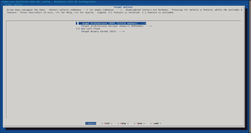 We will be building an embedded Linux image for MIPS32 little-endian processor. The configuration done on the “Target options” can be seen in the next screenshot.