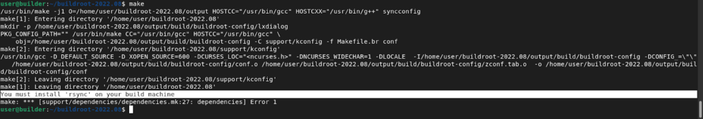 Then, rsync is missing, for the general build target.